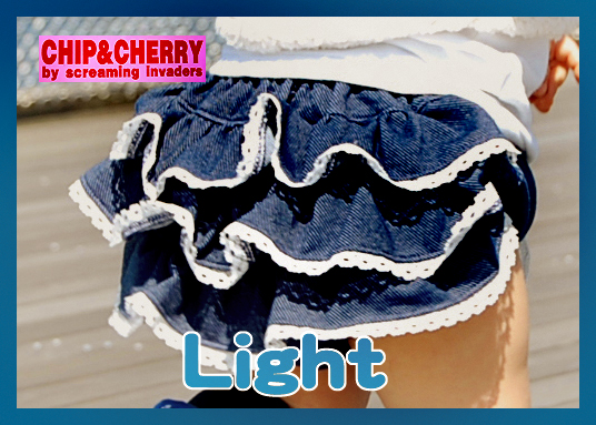 スタイル別 > スカート・ふりふりボトム・トップス > キュートな3段ふりふりデニムブルマ《Light》★日本製★【Chip&Cherry】