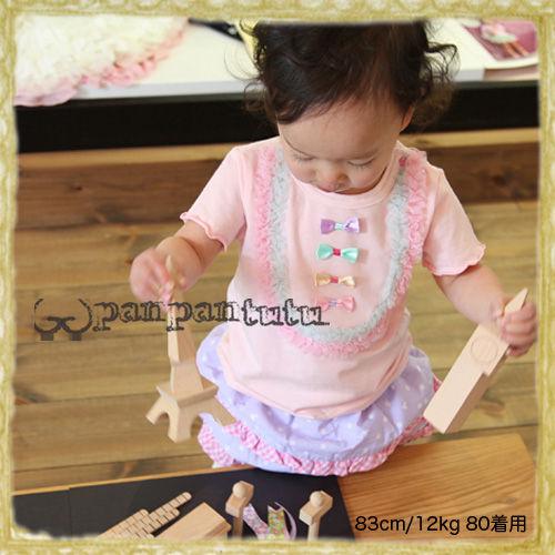 スタイル別 > ツーピース・セットアップ > 再入荷待ち 半袖チュールリボントップ(ベビーピンク) 80/90cm パンチュチュ panpantutu