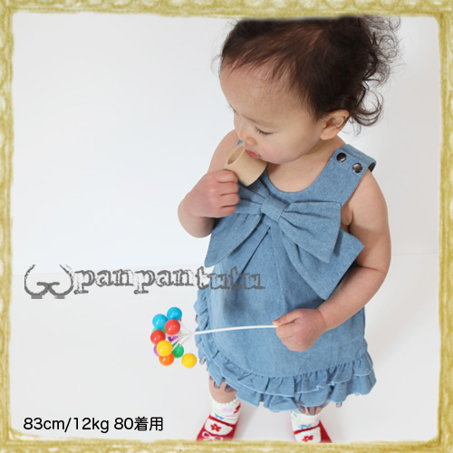 商品名 再入荷 リボンフリルワンピース(ライトデニム) 80/90cm パンチュチュ panpantutu
